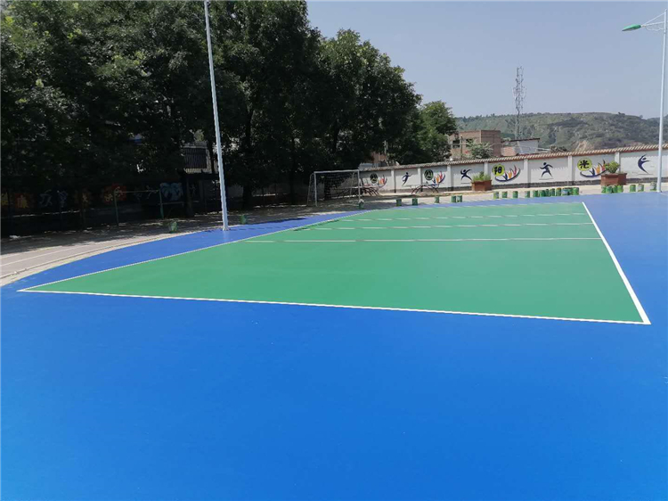 進(jìn)入校園,一片藍(lán)綠相間的塑膠(硅PU)球場映入眼簾。場地包含兩個(gè)籃球場,一個(gè)排球場,一個(gè)羽毛球場,采用的是廣州帝森DISEN單組份硅PU球場材料,更環(huán)保、安全、舒適、美觀,受到了校領(lǐng)導(dǎo)、施工方的大力肯定。