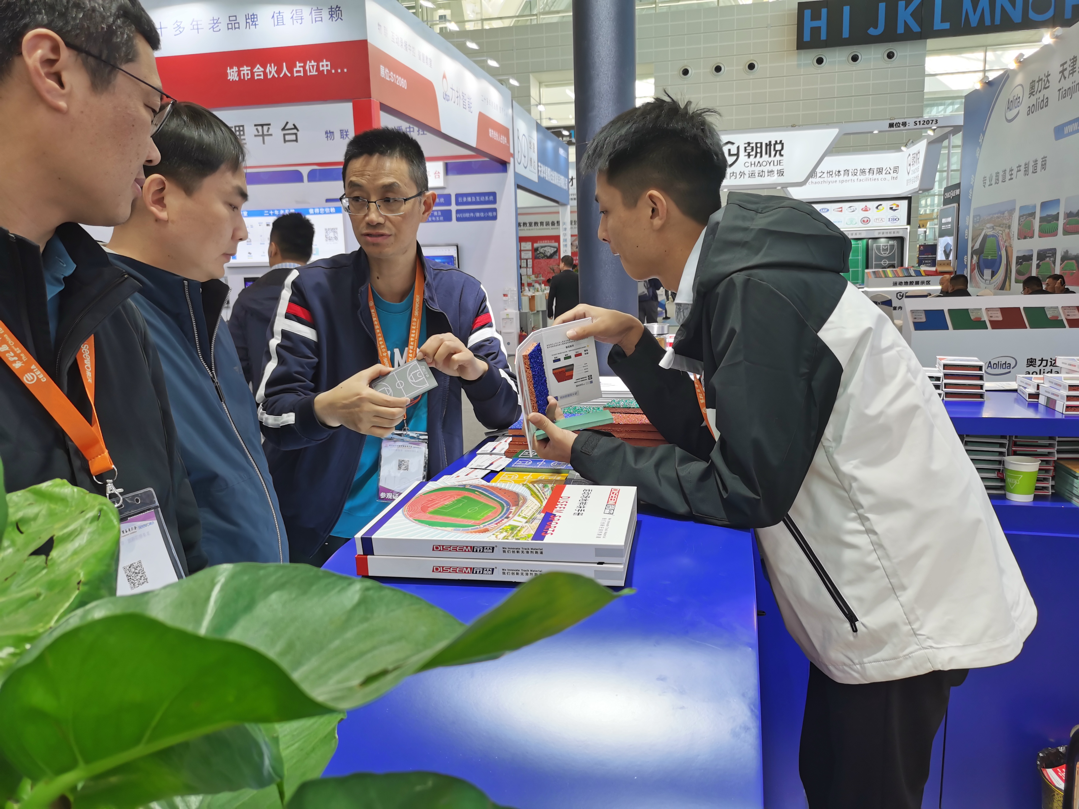廣州帝森展位位于S12號展館075展位 ,作為“無溶劑跑道”概念的倡導者和實踐者,又作為20多年專業(yè)彈性運動地面供應商,許多客戶聞訊而來咨詢了解。