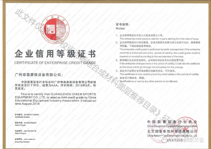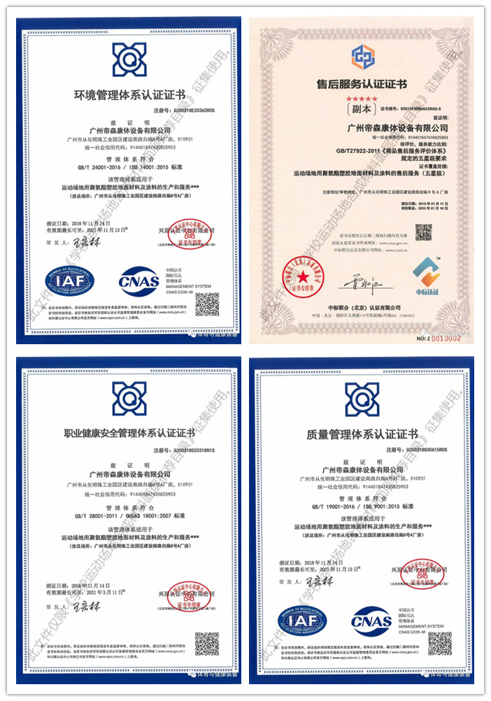 廣州帝森高度重視產(chǎn)品更新?lián)Q代與自主創(chuàng)新,專注塑膠跑道與其他體育鋪裝材料的環(huán)保安全與耐久性能。2015年與世界500強(qiáng)——美國(guó)陶氏化學(xué)公司合作,成為其中國(guó)代理商,聯(lián)袂投入“環(huán)保無(wú)溶劑”(DOW-DS無(wú)溶劑型)塑膠跑道材料的技術(shù)升級(jí)與生產(chǎn)。引領(lǐng)無(wú)溶劑體育鋪裝材料的發(fā)展,捍衛(wèi)綠色環(huán)保校園,為學(xué)生的運(yùn)動(dòng)健康保駕護(hù)航,切實(shí)履行企業(yè)的社會(huì)責(zé)任。同時(shí),廣州帝森公司還獲得多地教育部門及體育部門推薦材料供應(yīng)商資格。