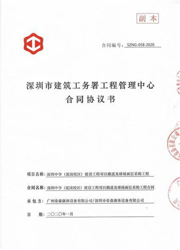 日前,廣州帝森康體設(shè)備有限公司與深圳市建筑工務(wù)署工程管理中心簽訂了深圳中學(xué)(泥崗校區(qū))建設(shè)工程項(xiàng)目跑道及球場面層采購工程合同,參與政府重大民生工程建設(shè)。并與市建筑工務(wù)署署長喬恒利、市教育局巡視員張淶臨等領(lǐng)導(dǎo),出席深圳中學(xué)(泥崗校區(qū))建設(shè)工程項(xiàng)目“攻堅(jiān)90日”誓師大會(huì)儀式。