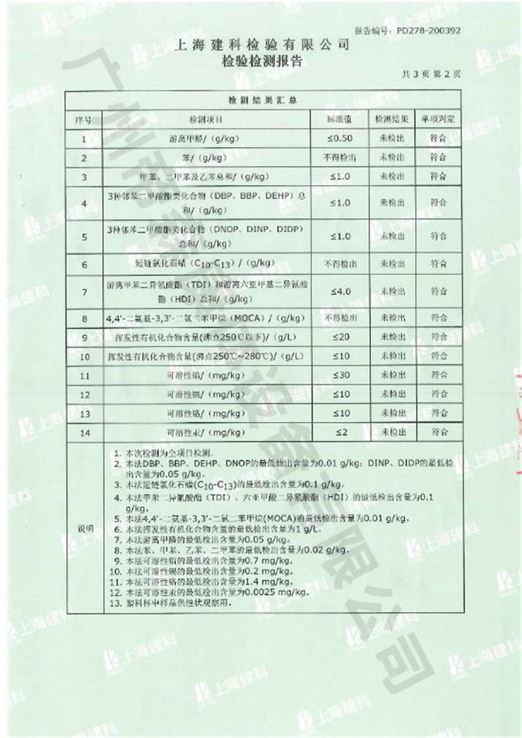 日前,為讓廣大業(yè)主放心使用綠色環(huán)保的地面材料,廣州帝森DISEN耐黃變膠水接受了上海建科檢驗(yàn)有限公司檢測(cè)。報(bào)告顯示,廣州帝森DISEN耐黃變膠水符合更嚴(yán)要求的上海團(tuán)標(biāo),而且所有有害物質(zhì)檢測(cè)項(xiàng)目都是“未檢出”。