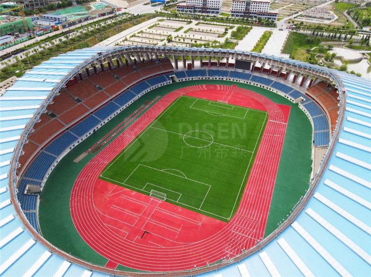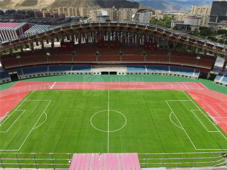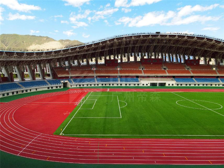 廣州帝森DISEN材料憑著優(yōu)異的性能,克服了氣候惡劣、高原環(huán)境復(fù)雜等不利因素,助力項(xiàng)目如期竣工。體育場全塑型塑膠跑道,面積達(dá)15000平方米,完全符合新國標(biāo)環(huán)保要求,不添加任何有機(jī)溶劑,無有害物質(zhì),無刺激性氣味,是安全、環(huán)保、專業(yè)、耐用的綠色運(yùn)動(dòng)鋪裝材料。