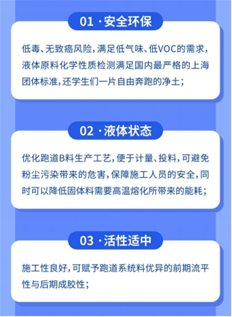 場(chǎng)地優(yōu)選廣州帝森DISEN和萬(wàn)華化學(xué)高質(zhì)量、環(huán)保且易施工產(chǎn)品,不使用、不添加任何有機(jī)溶劑,鋪設(shè)過(guò)程無(wú)異味,投入使用后無(wú)任何有害物質(zhì)釋放。所有有害物檢測(cè)項(xiàng)目都經(jīng)得起鋪裝現(xiàn)場(chǎng)取樣檢測(cè),能通過(guò)新國(guó)標(biāo)、比國(guó)標(biāo)更嚴(yán)的上海團(tuán)標(biāo)檢測(cè)。