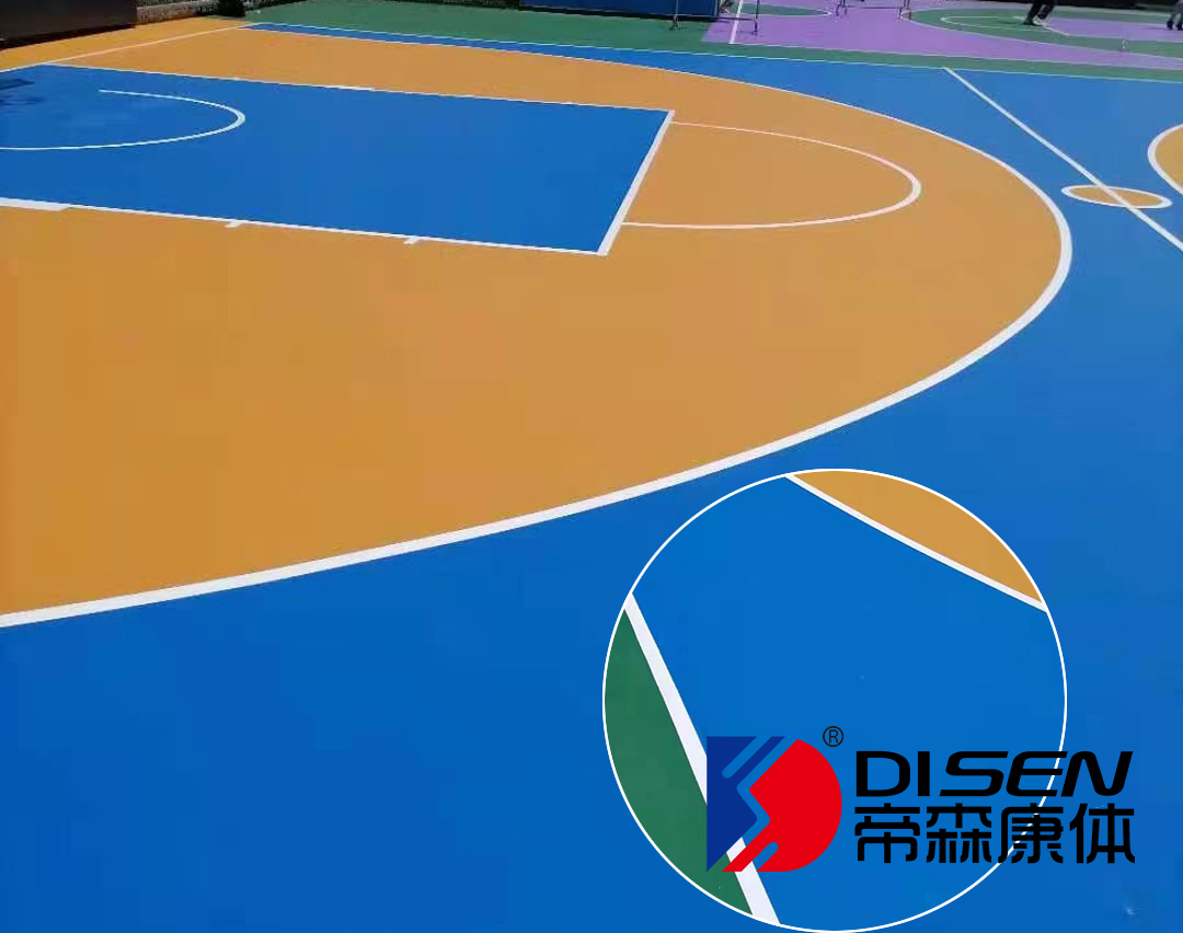 卓夢教育學(xué)校硅pu球場項(xiàng)目修補(bǔ)場地,采用廣州帝森DISEN提供的面漆原材料,通過藍(lán)黃、綠紫的搭配,色彩純正鮮明,不一樣的配色,不一樣的體驗(yàn)效果。