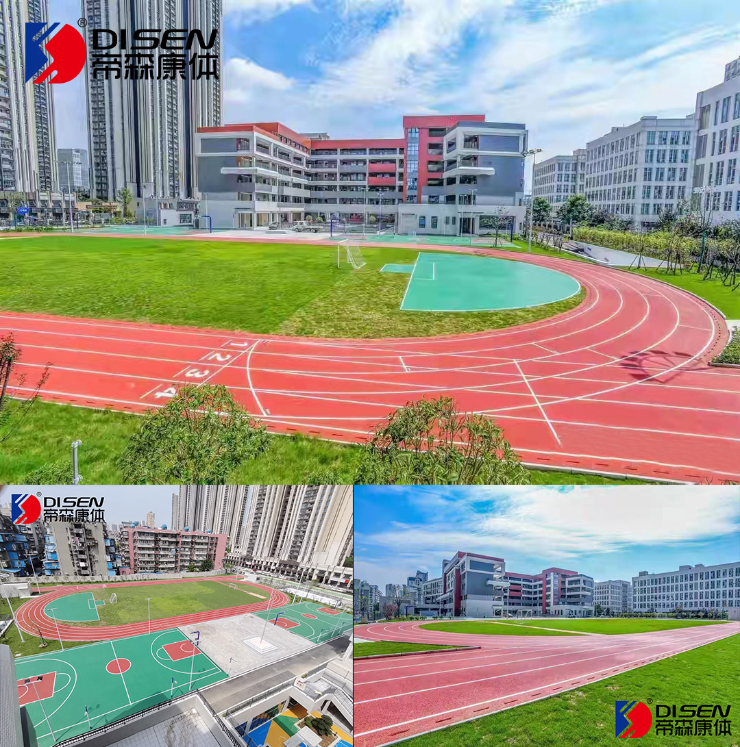 龍陽中學(xué)紅色跑道,由廣州帝森DISEN提供原材料和技術(shù)支持,整體的視覺美觀,耐候性優(yōu)異,色彩穩(wěn)定持久,優(yōu)質(zhì)的運(yùn)動性能和高品質(zhì)環(huán)保性能,紅色跑道與藍(lán)色球場及綠色草地結(jié)合,帶給學(xué)生放松、愉悅的感受。