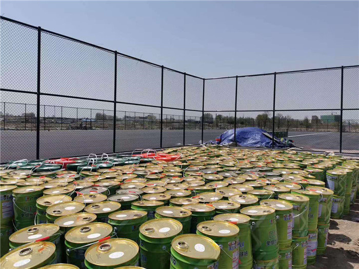 廣州帝森DISEN單組份硅PU球場材料可搭配成膜劑使用(用量約為單組份球場材料的1%)。添加成膜劑可實現施工厚度不受限制及緩解單組份材料易粉化的特性。若不添加成膜劑,施工厚度為常規(guī)單組份材料厚度約2mm/遍,具體厚度根據當地環(huán)境自主調節(jié)。