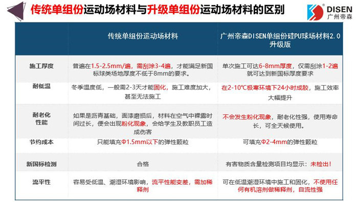 廣州帝森DISEN單組份硅PU球場材料2.0升級版,王者歸來!