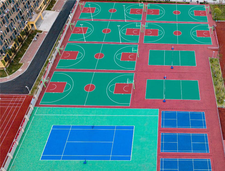 學(xué)校為學(xué)生規(guī)劃了多功能大型運(yùn)動(dòng)場(chǎng),其中綜合球場(chǎng)為硅PU球場(chǎng),由廣州帝森DISEN出色的施工隊(duì)鋪設(shè),最終成功交付場(chǎng)地。