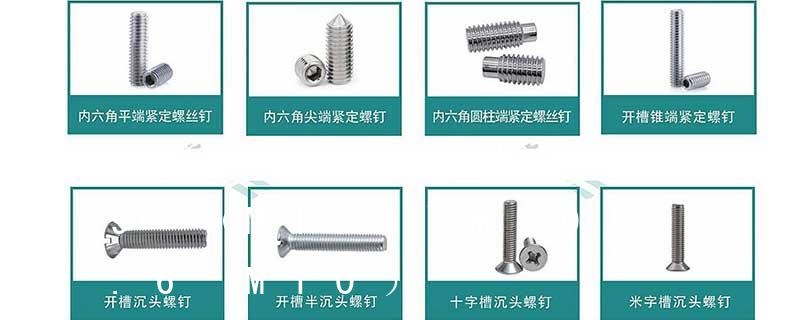 ①機(jī)器螺釘:因頭型和槽型不同而分成許多品種。頭型有圓柱頭、盤(pán)頭、沉頭和半沉頭幾種,頭部才形為開(kāi)槽(一字材)和十字槽兩種。見(jiàn)GB65、GB67—69及GB818—820等。②緊定螺釘:緊定螺釘利用其尾端,起防止工件間相互